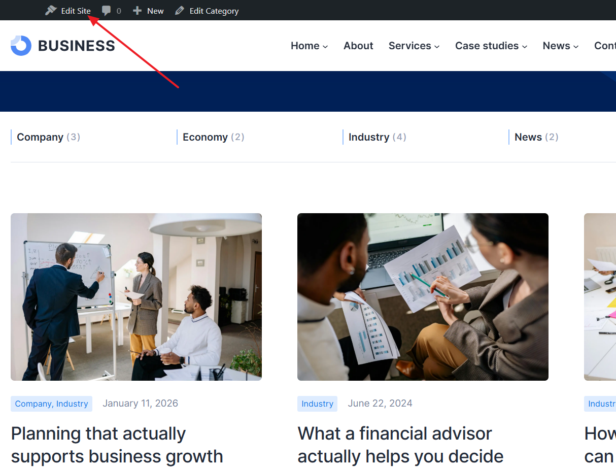 And if you need to edit other areas, for example, a posts archive, simply open the appropriate archive page and click the link in the top bar (fig. 3).