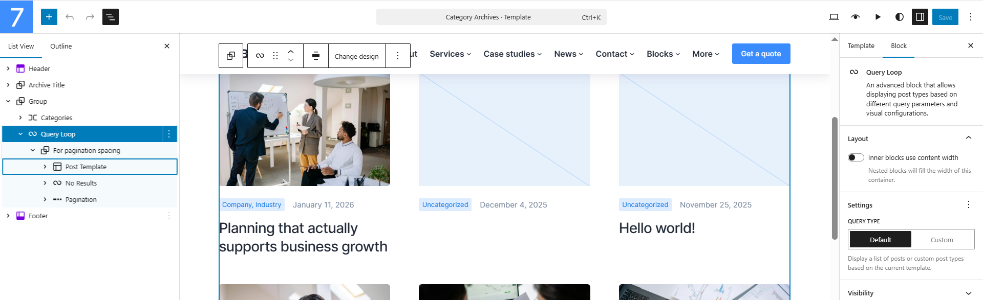 Full Site Editing (FSE) is a native WordPress tool, and it works with The7 theme in the usual way – so you can rely on any official WordPress documentation to learn and apply it. Nevertheless, below you will find a very short guide highlighting the most important aspects of using FSE with The7, illustrated through editing a The7 demo.